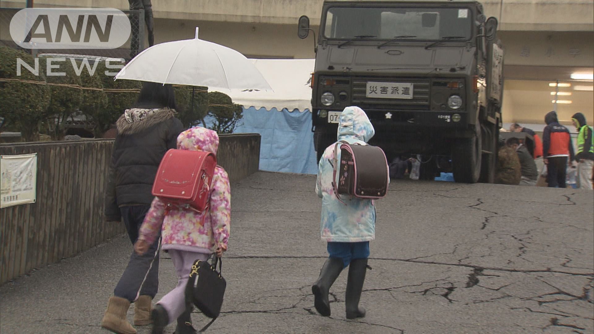 1日の地震で蛸島町は多くの家屋が壊れ、小学校には一時800人の避難者が集まった。体育館だけでなく、教室も避難者の生活スペースとなり、廊下にはトイレットペーパーなど支援物資が並ぶ。理科室には簡易シャワーが設置された。職員室が避難所の本部になった。