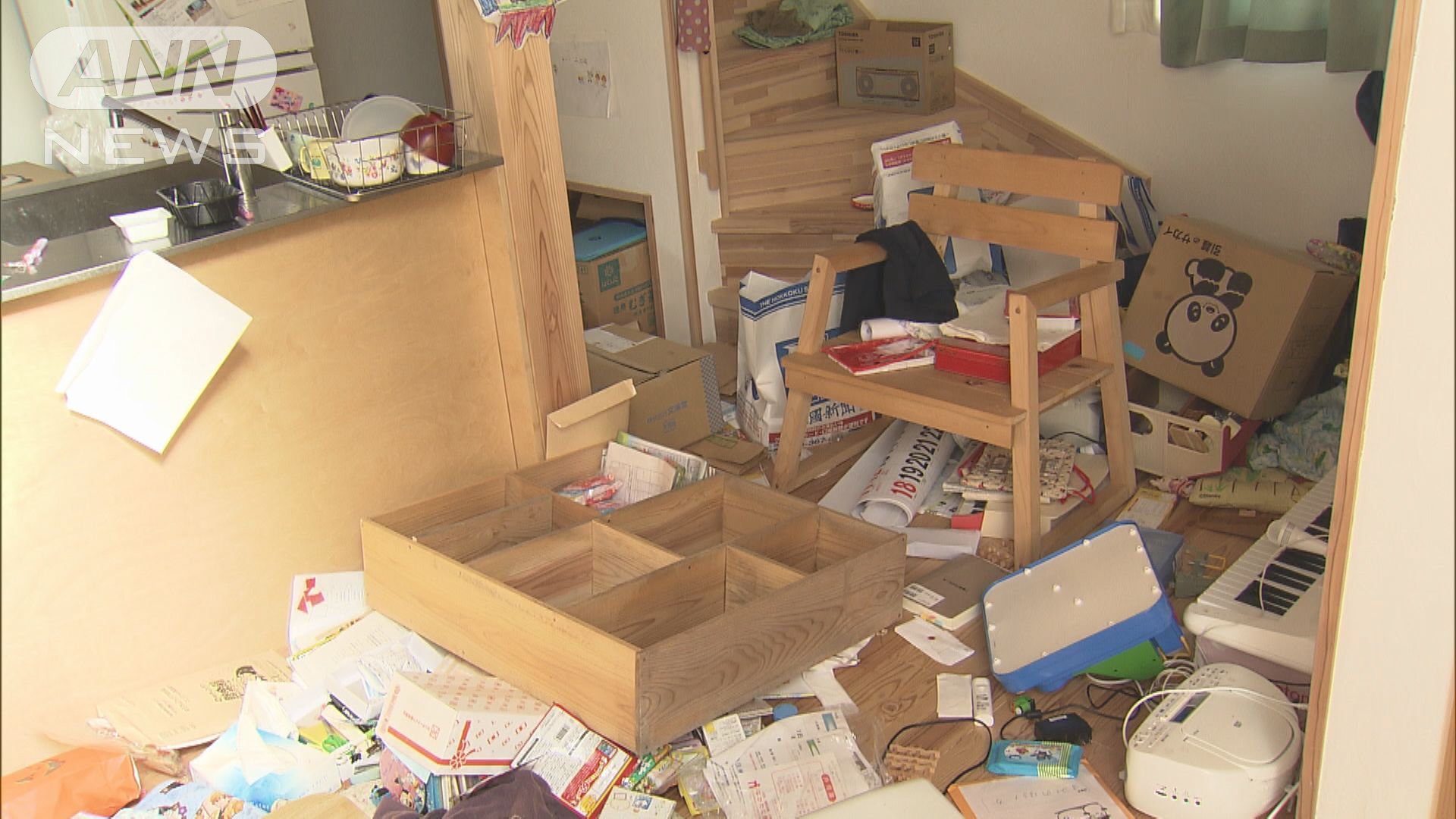 家具や子どものおもちゃなどが散乱し部屋の中はめちゃくちゃになっていたが、何とか住める状態だった。