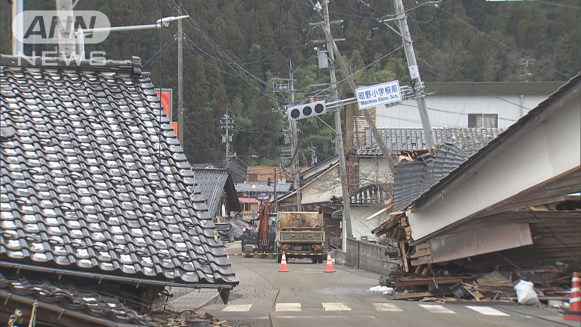 能登空港から車でおよそ1時間。珠洲市へ向かう途中、いたるところで家屋が倒壊していた。年末から変わり果ててしまった光景。周辺の古くからの住宅は軒並み倒壊していたが、角野さんの住宅は残っていた。