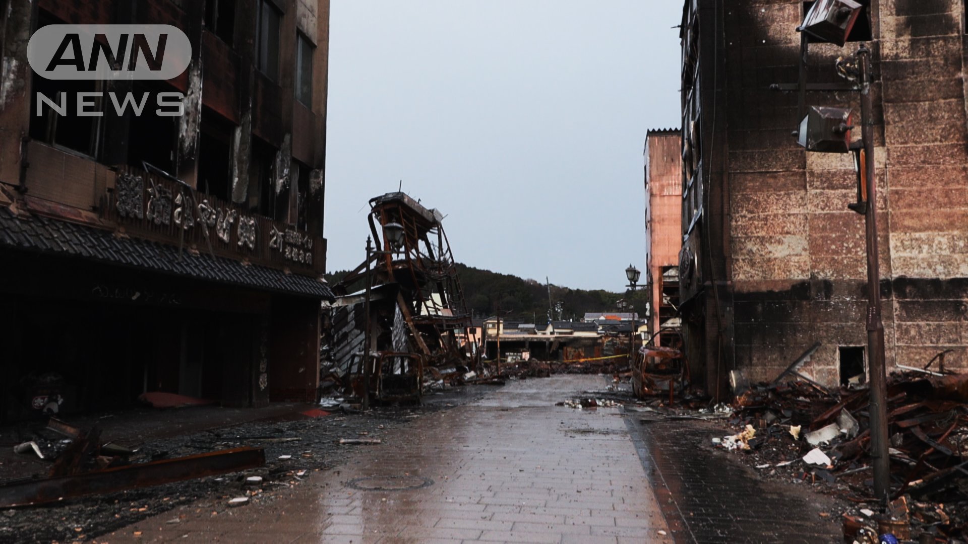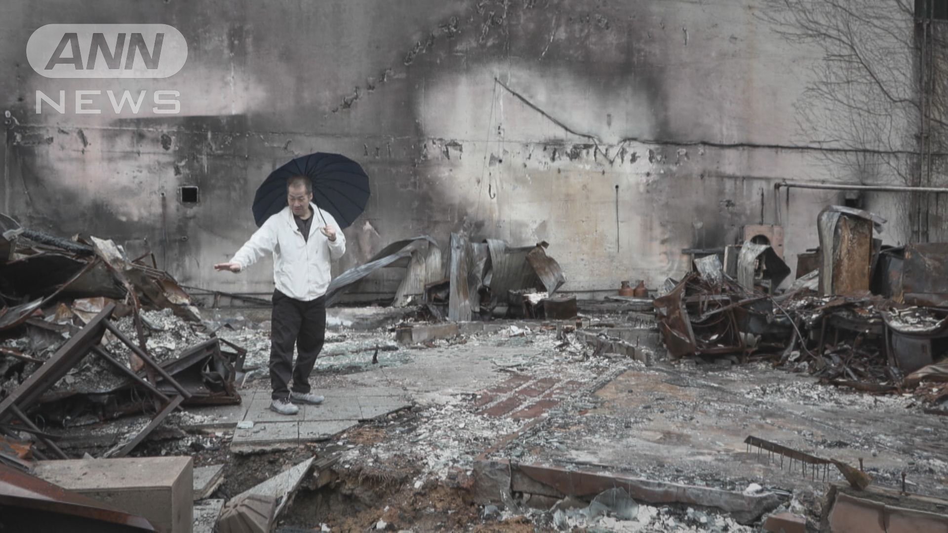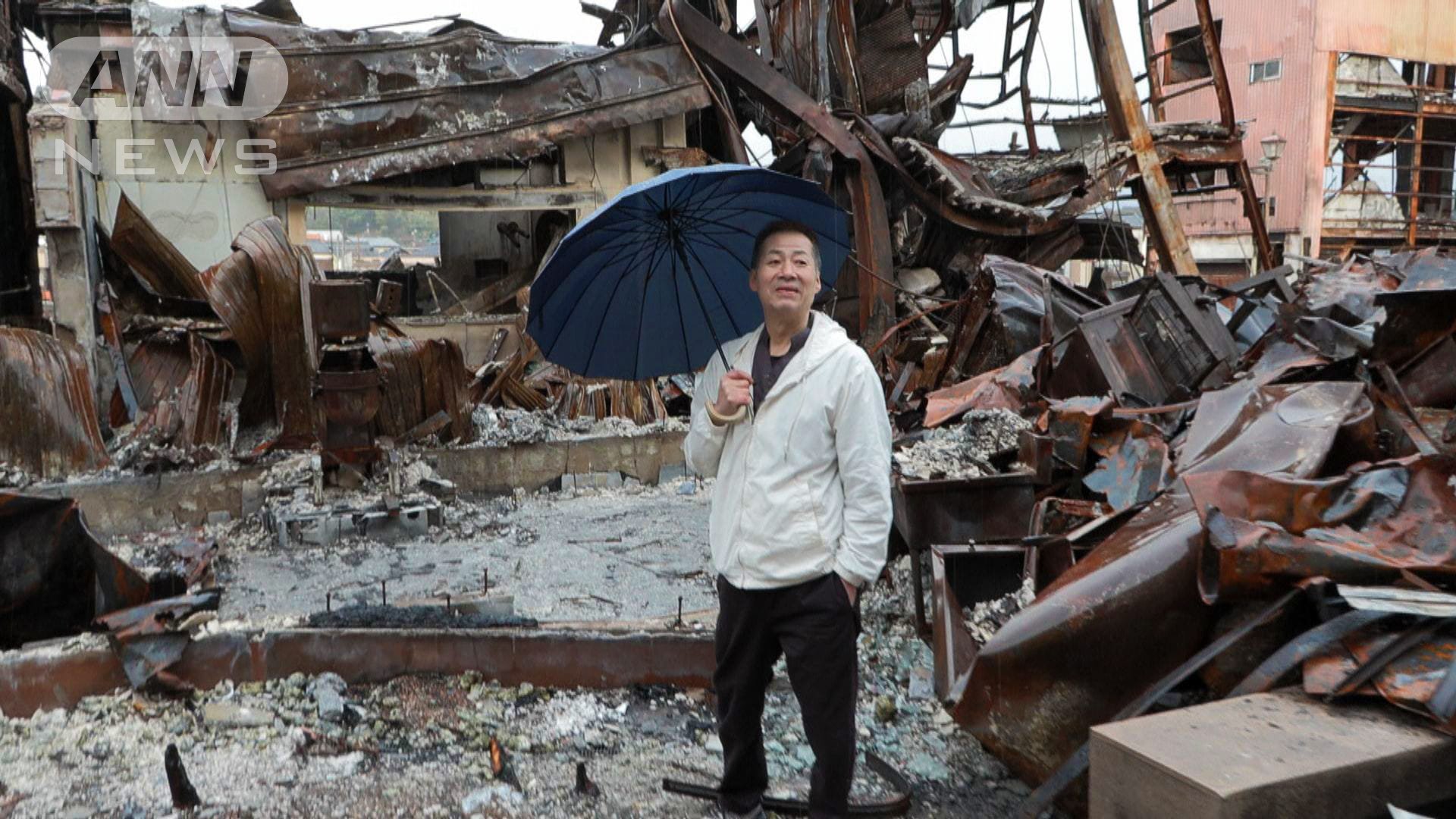 約360メートルの通りを西へ進むと、紙さんが12年にわたり切り盛りしていた食堂「朝市さかば」の場所についた。焼け焦げた鉄くずとひしゃげたトタン屋根が落ち、どこが入口なのかもわからなかった。