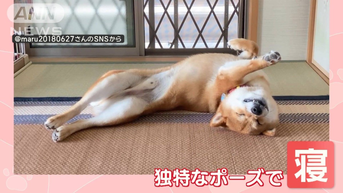 変わったポーズで寝ていたのは、柴犬のまるくん(5)です。