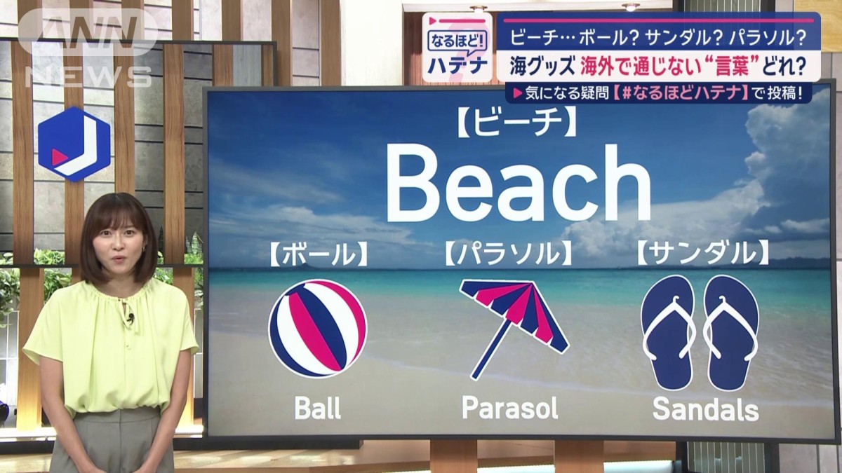 海の定番アイテムを使ったり、見たことがあると思います。頭に英語の「ビーチ」が付いているものも多いですよね。続く言葉も、どれも英語のようなものばかりですが、この中で、海外では通じない言葉があります。一体、どれでしょうか。日本に来ている外国人観光客に聞いてみました。