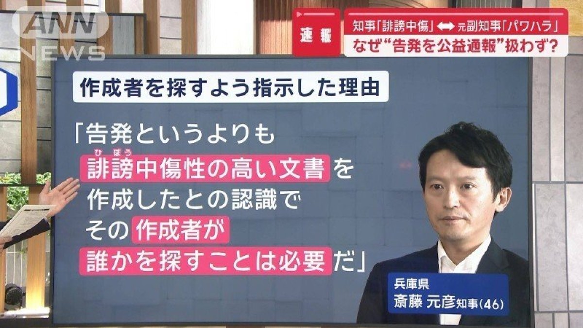 兵庫県の元西播磨県民局長は斎藤知事のパワハラなどを告発する文書を報道機関などに送ります。