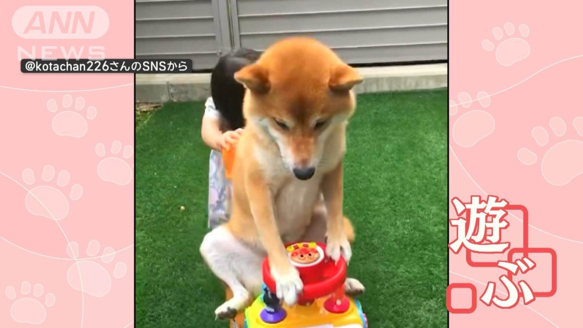 おもちゃの車に乗っていたのは、柴犬のこたろうくん(7)です。