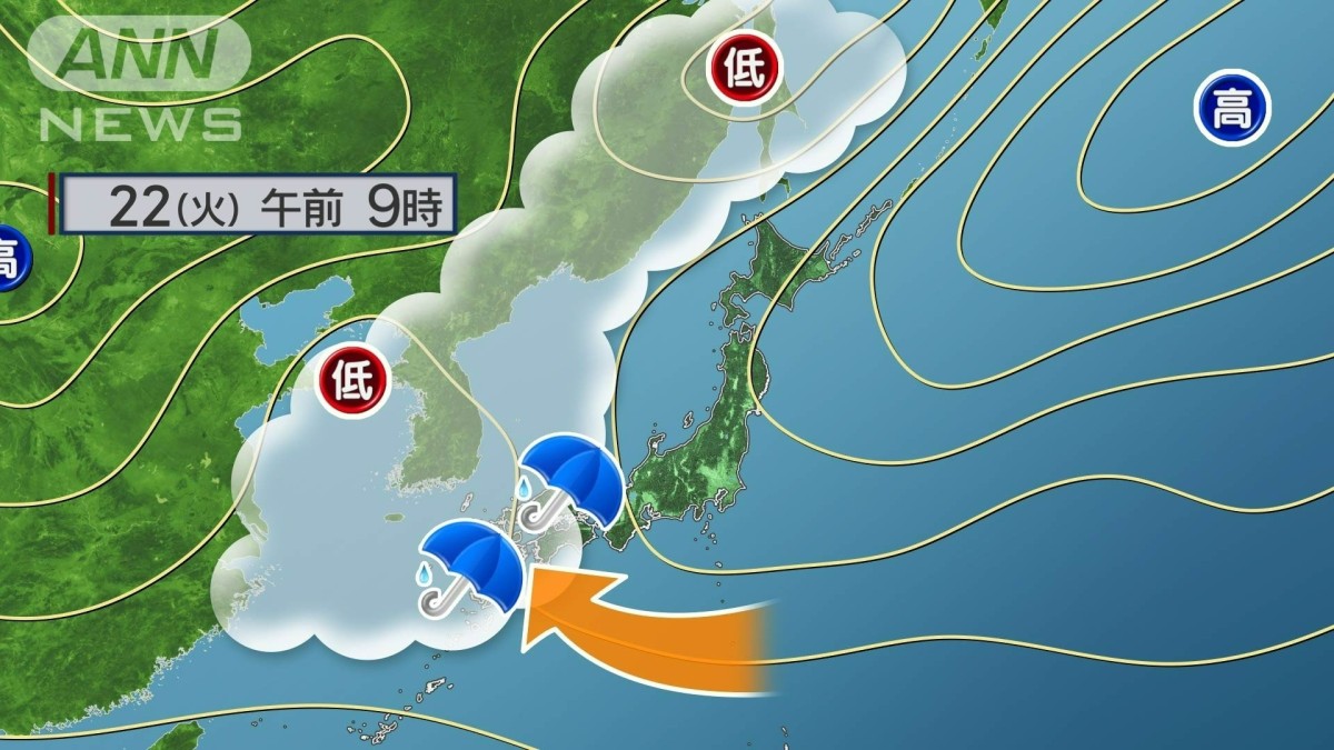南から湿った空気が流れ込んでいる九州ではきょう22日(火)も激しい雨や雷雨となっています。