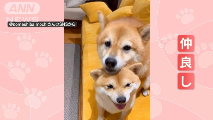 もちくん(4)が、つぶくん(2)の頭や背中を押さえていました。