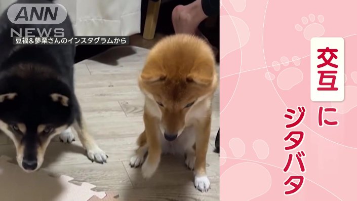 足をジタバタしていたのは、柴犬の豆福(まめふく)くん(5)と、夢栗(ゆめくり)ちゃん(2)です。