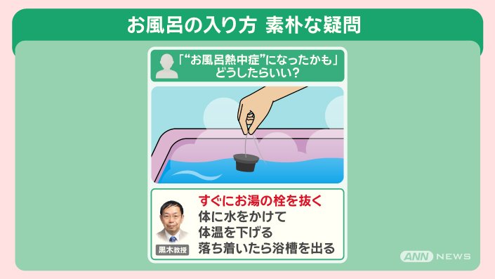 「お風呂での体調不良は、入浴中の『熱中症』による体調不良の可能性が高い」ということです。