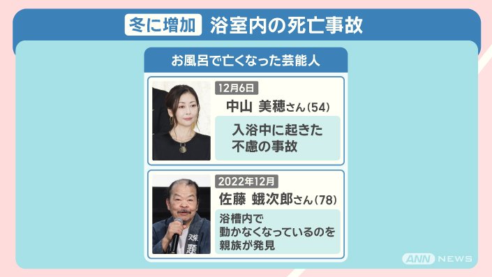 ■冬に急増 入浴中の死亡事故 中山美穂さんも