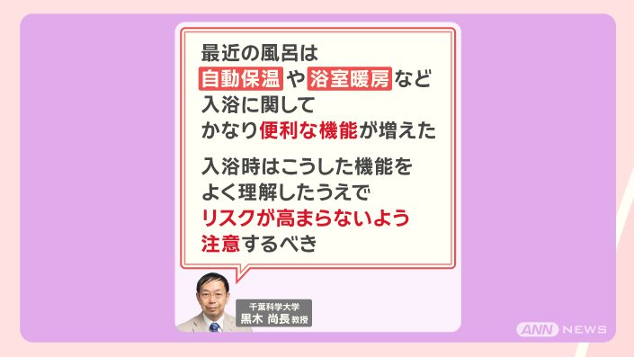「最近の風呂は、自動保温や浴室暖房など入浴に関して、かなり便利な機能が増えた。入浴時はこうした機能をよく理解したうえで、リスクが高まらないよう注意するべき」