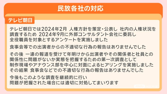 ■「社内調査」テレビ朝日や民放各社の対応