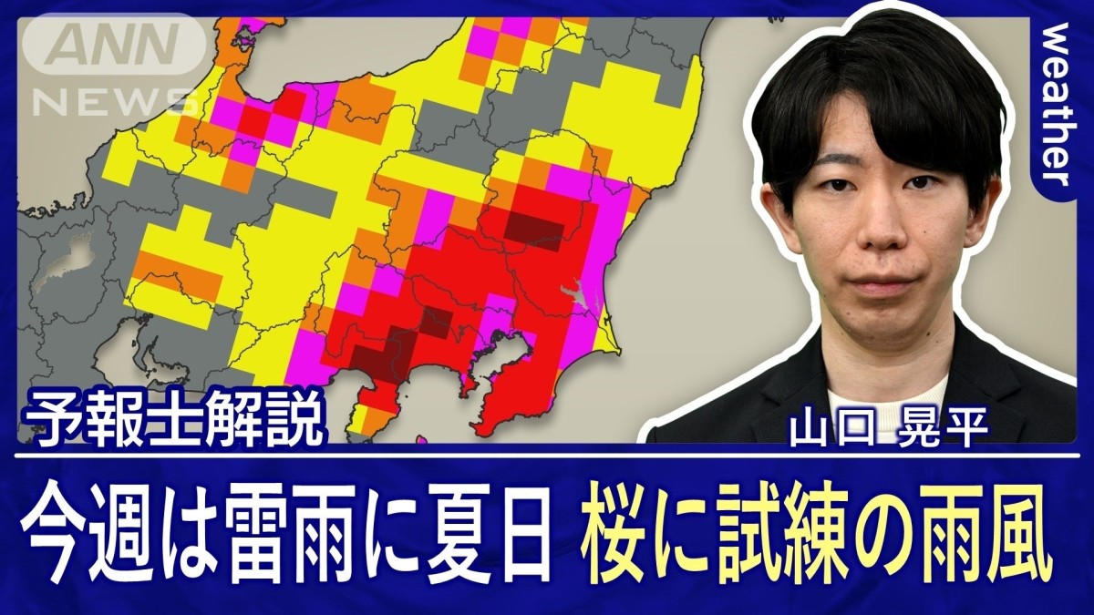 週前半は、関東から九州で穏やかな天気になります。強い日差しのもと気温が上がり、九州など西日本では25℃以上の夏日になる所もあるでしょう。湿度は低めでカラッとしているため、過ごしやすい陽気になりそうです。ただ、あす8日(火)は、北日本と北陸は不安定な天気が続きます。昼過ぎから夜にかけては、急な雨や雷に注意が必要です。桜は満開のあとで、桜吹雪となる所も多くなってきますが、あさって9日(水)までは、まだまだお花見を楽しめるでしょう。