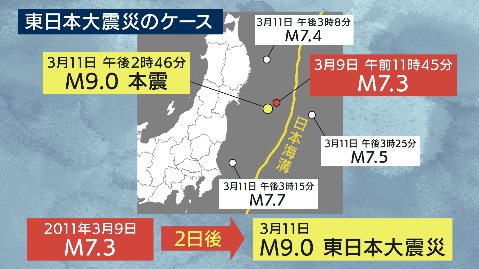 この2日後の3月11日に、マグニチュード9.0の巨大地震、東日本大震災が発生しました。