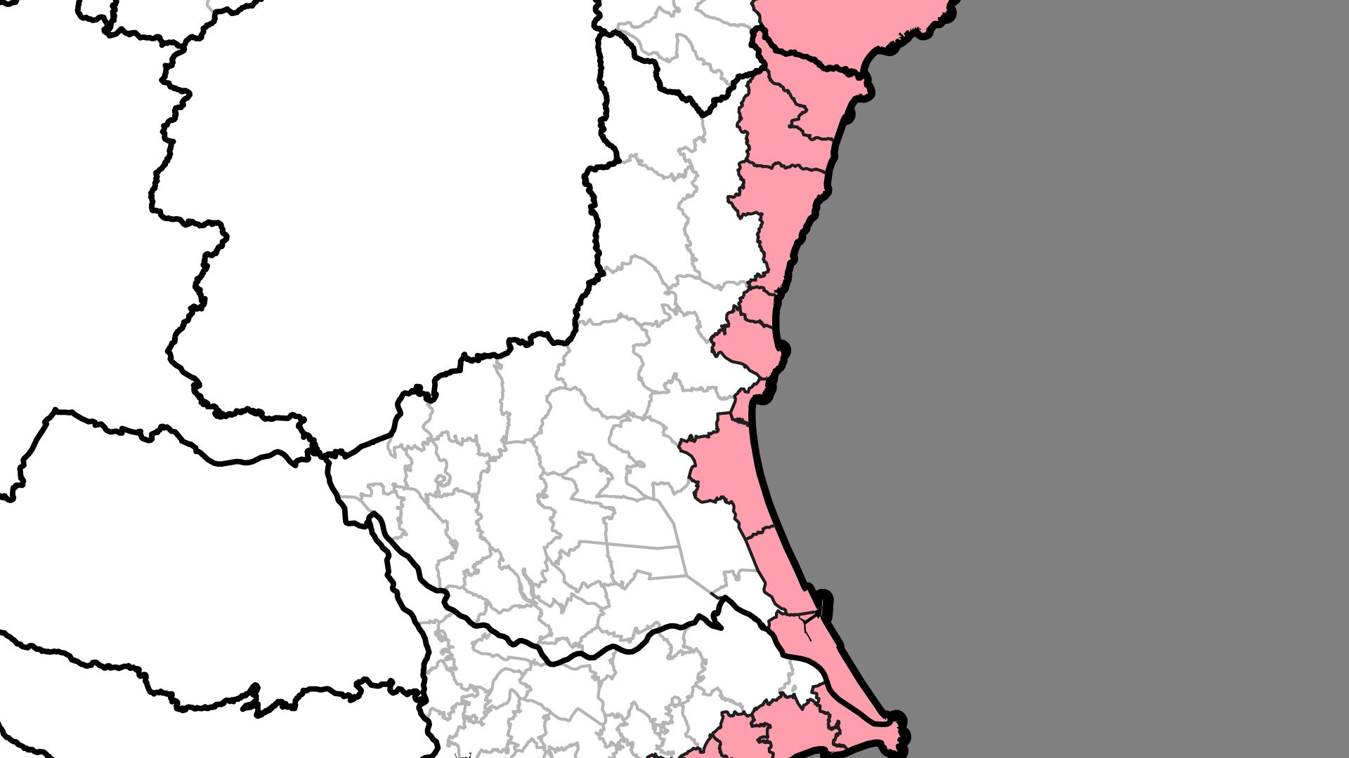 いわき市、大熊町、新地町、相馬市、富岡町、浪江町、楢葉町、広野町、双葉町、南相馬市