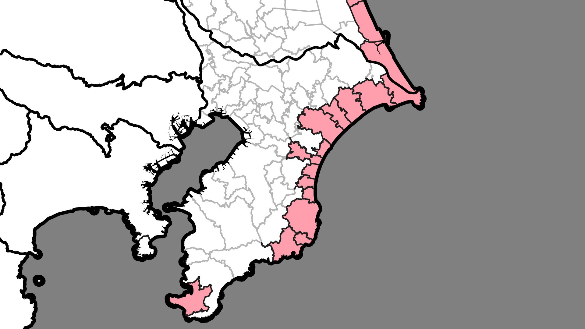 旭市、いすみ市、一宮町、大網白里市、御宿町、勝浦市、九十九里町、山武市、白子町、匝瑳市、館山市、銚子市、長生村、横芝光町
