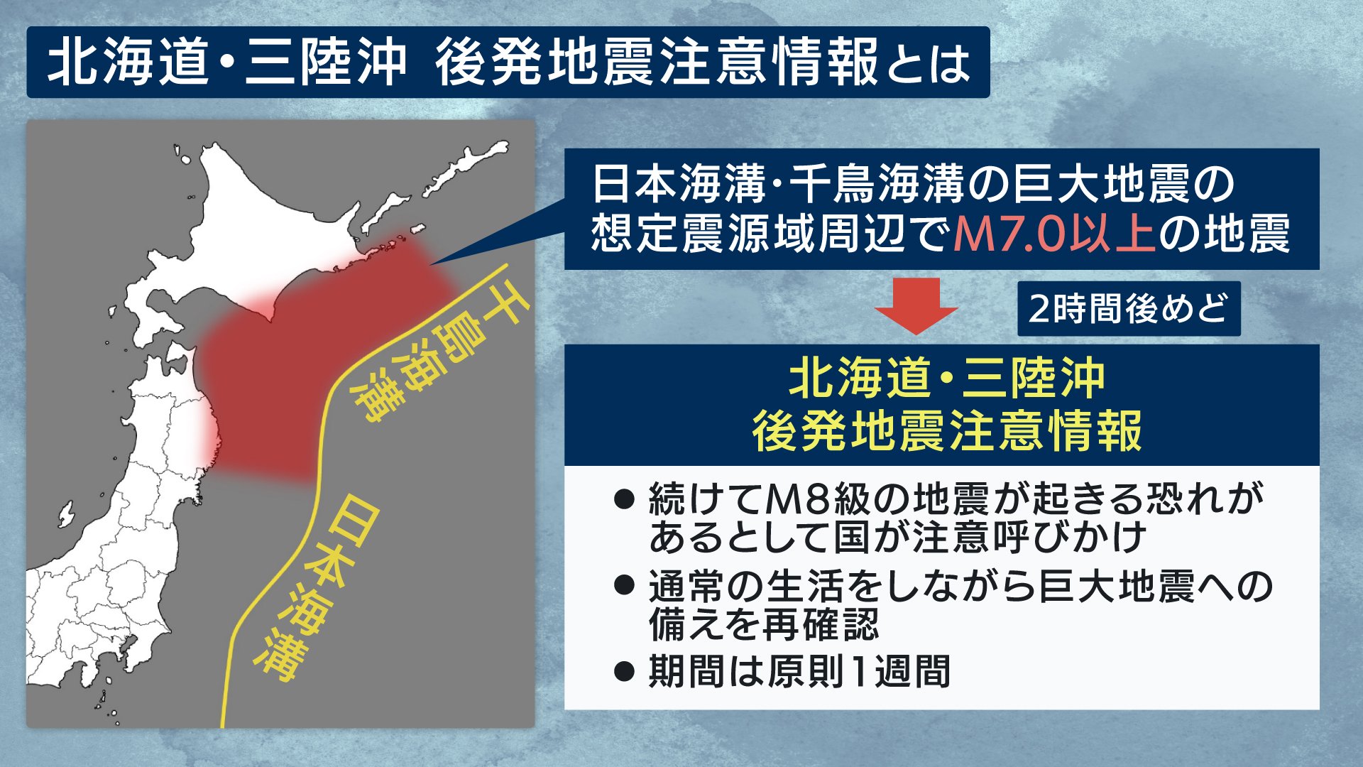 ただ、地震が発生した場合は、北海道から千葉県にかけての広い範囲で甚大な被害が想定されます。そのため、いざという時の準備をしておくよう求めるのが、この情報です。