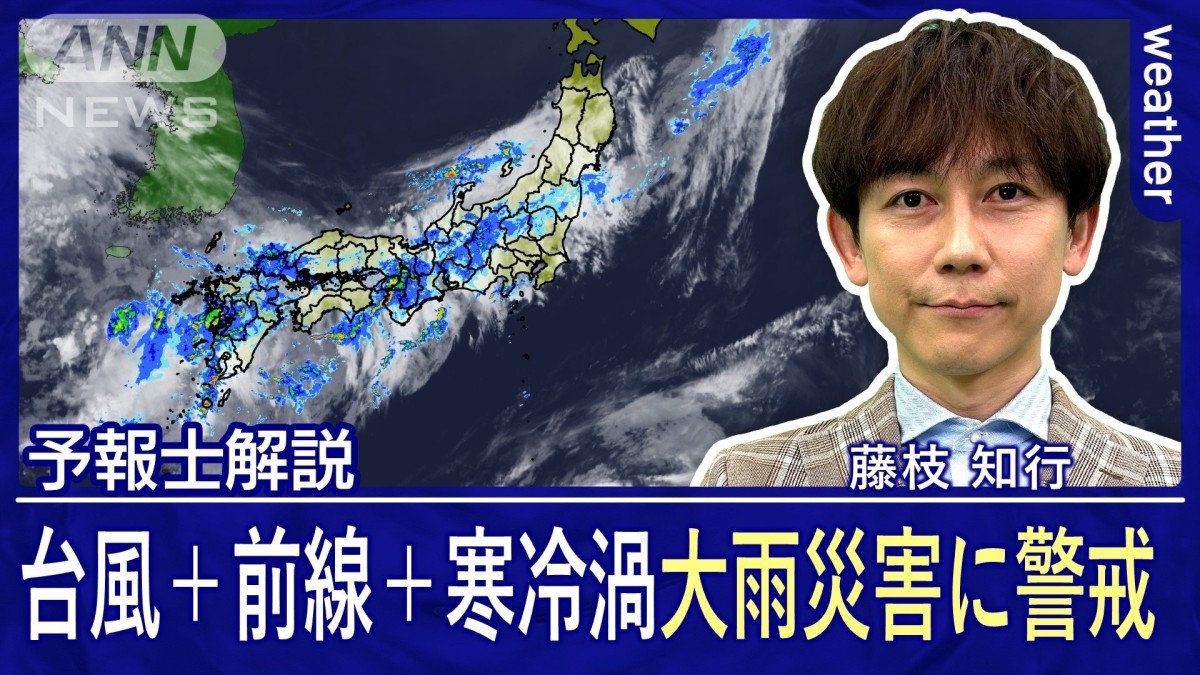 あす(水)にかけて、台風2号、活発な梅雨前線、寒冷渦という「大雨を降らせる3要素」がそろうため、このような危険な雨が全国のどこで降ってもおかしくありません。