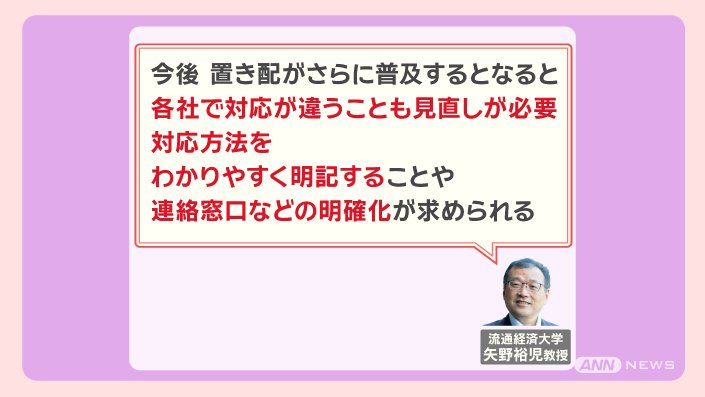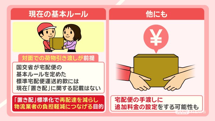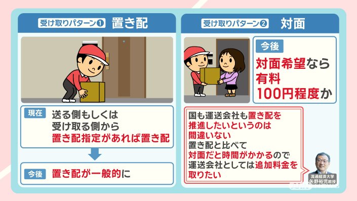「国も運送会社も、置き配を推進したいというのは間違いない。置き配と比べて、対面だと時間がかかるので、運送会社としては、追加料金を取りたい」ということです。