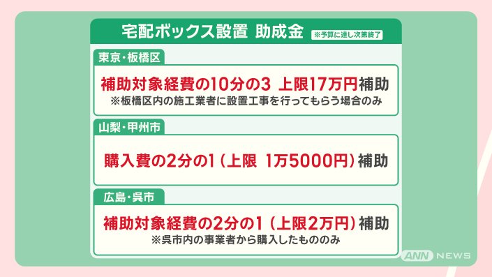 ■宅配BOX設置 自治体が補助 “置き配保険”も