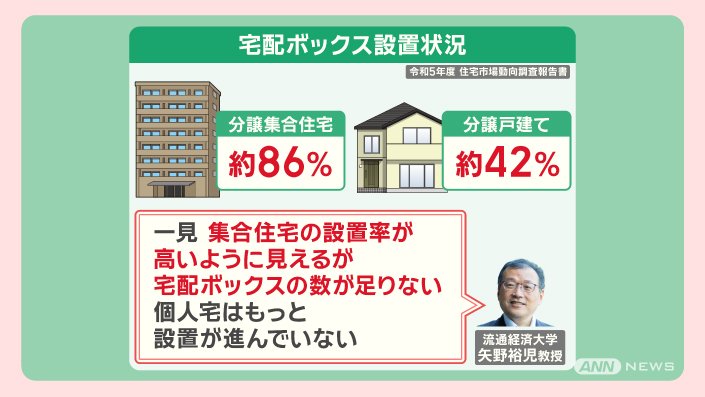 「一見、集合住宅の設置率が高いように見えるが、宅配ボックスの数が足りない。個人宅はもっと設置が進んでいない」ということです。