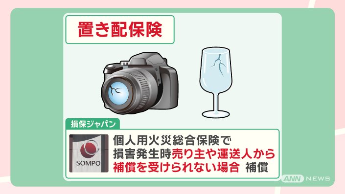 損保ジャパンは、個人用火災総合保険で、置き配の盗難などで損害が発生して、売り主や運送人から補償を受けられない場合、補償してくれるということです。