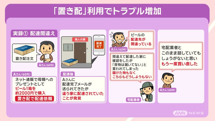 『置き配』利用のトラブルの実例です。