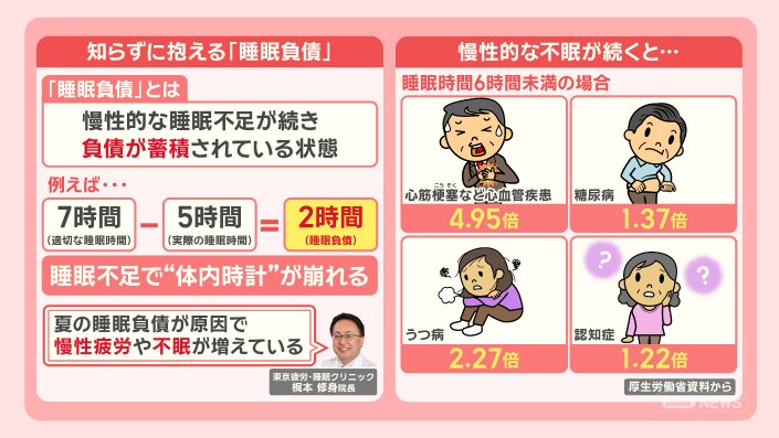 「夏の睡眠負債が原因で、慢性疲労や不眠が増えている」といいます。