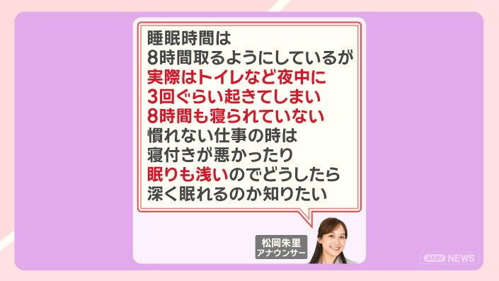 「夜中に3回起きる」という松岡アナの睡眠について見ていきます。