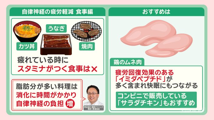 「脂肪分が多い料理は、消化に時間がかかり、自律神経への負担が増える」ということです。