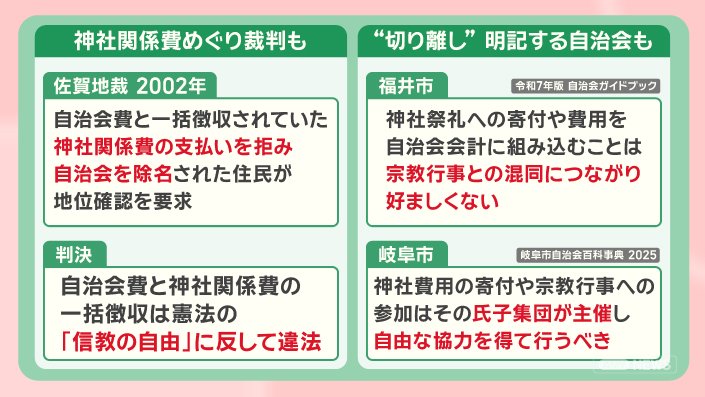 ■町内会費「なぜ神社関係費も」法廷闘争になったケースも