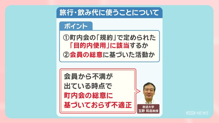 町内会費を旅行・飲み代に使うことについて、玉野教授によると、ポイントは2つです。