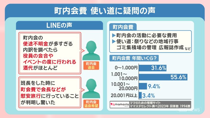 8月のパネルコーナーで、『町内会』の存続危機や住民トラブルについて紹介したところ、視聴者の方から約1700件のLINEのメッセージが届くなど、多くの反響がありました。