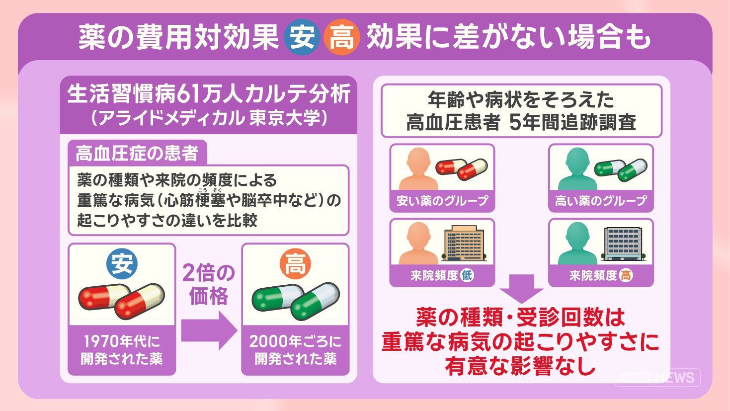 ■薬の価格 高い・安いで効果に差は?追跡調査すると…