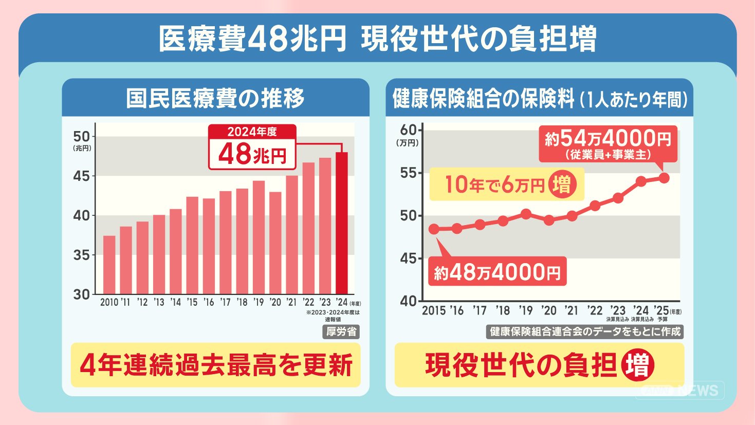 ■医療費 過去最高の48兆円 増える現役世代の負担