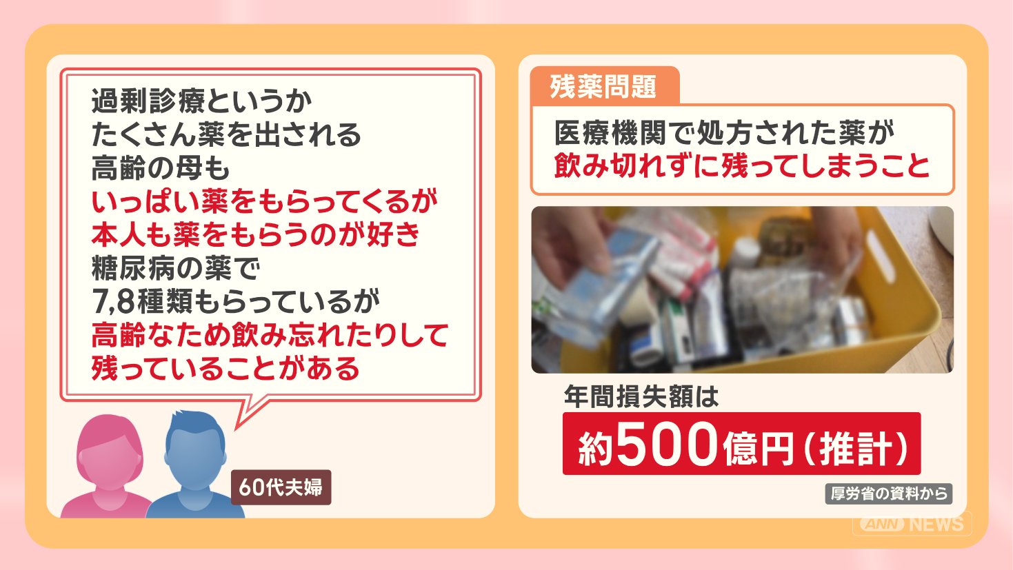 こうした、医療機関で処方された薬が飲み切れずに残ってしまう残薬の問題があります。