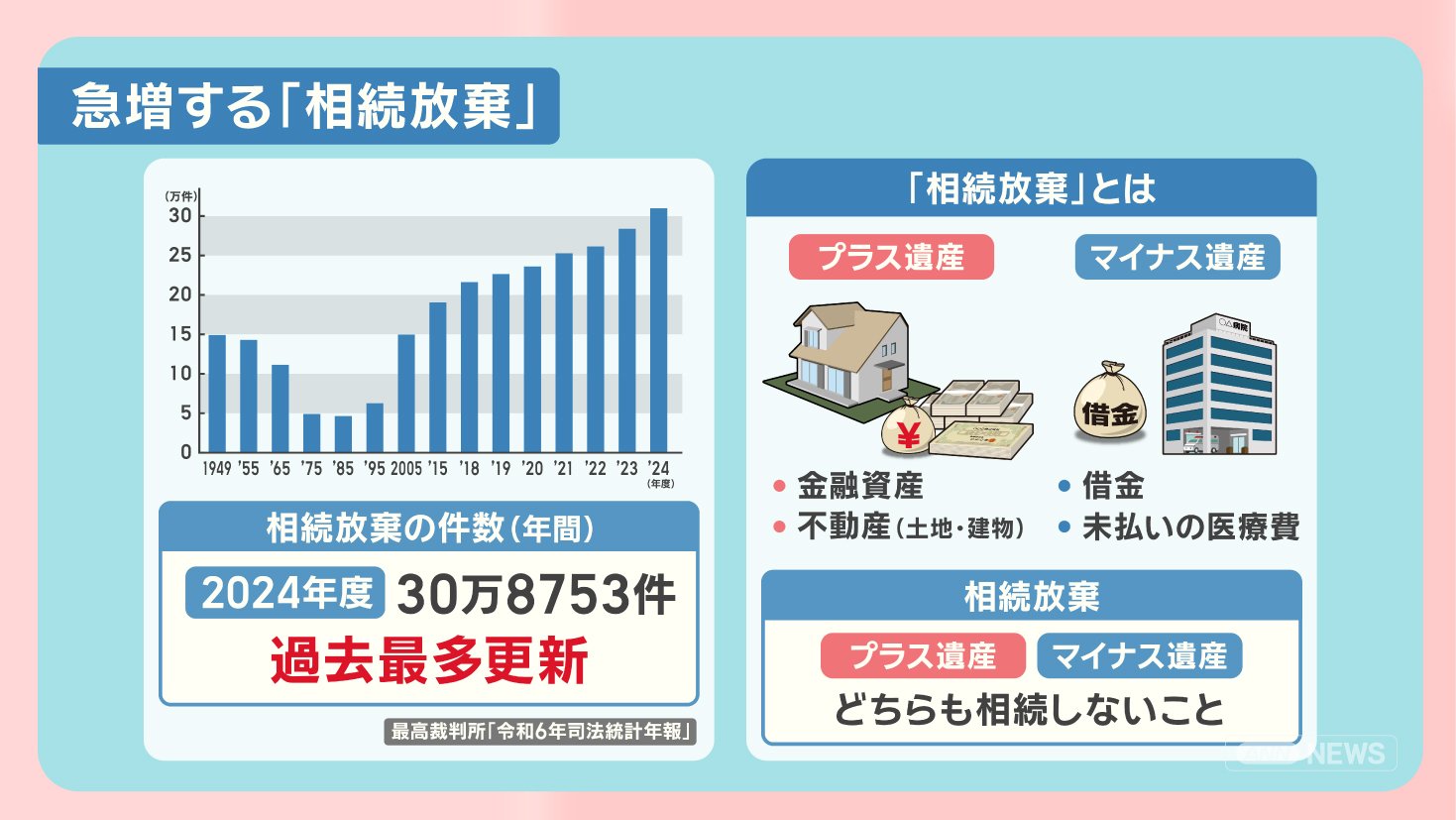 このマイナス遺産に関連して、近年、『相続放棄』の件数が増えています。