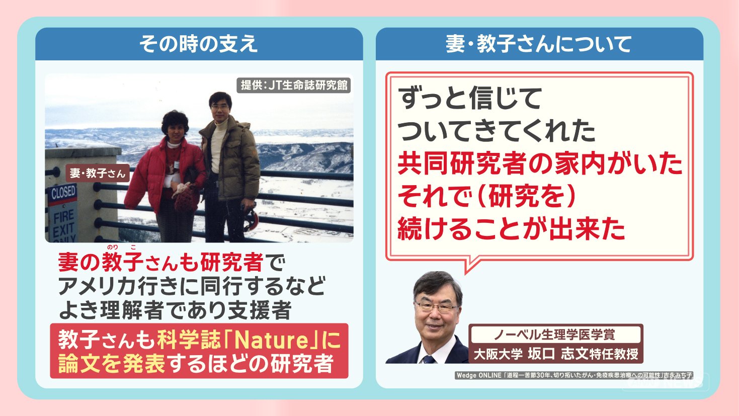 「ずっと信じてついてきてくれた、共同研究者の家内がいた。それで(研究を)続けることが出来た」と話しています。