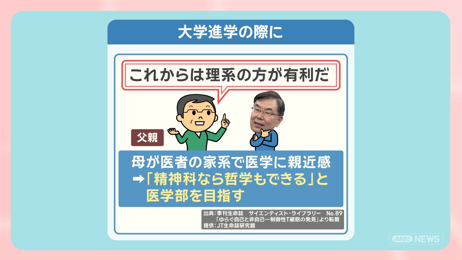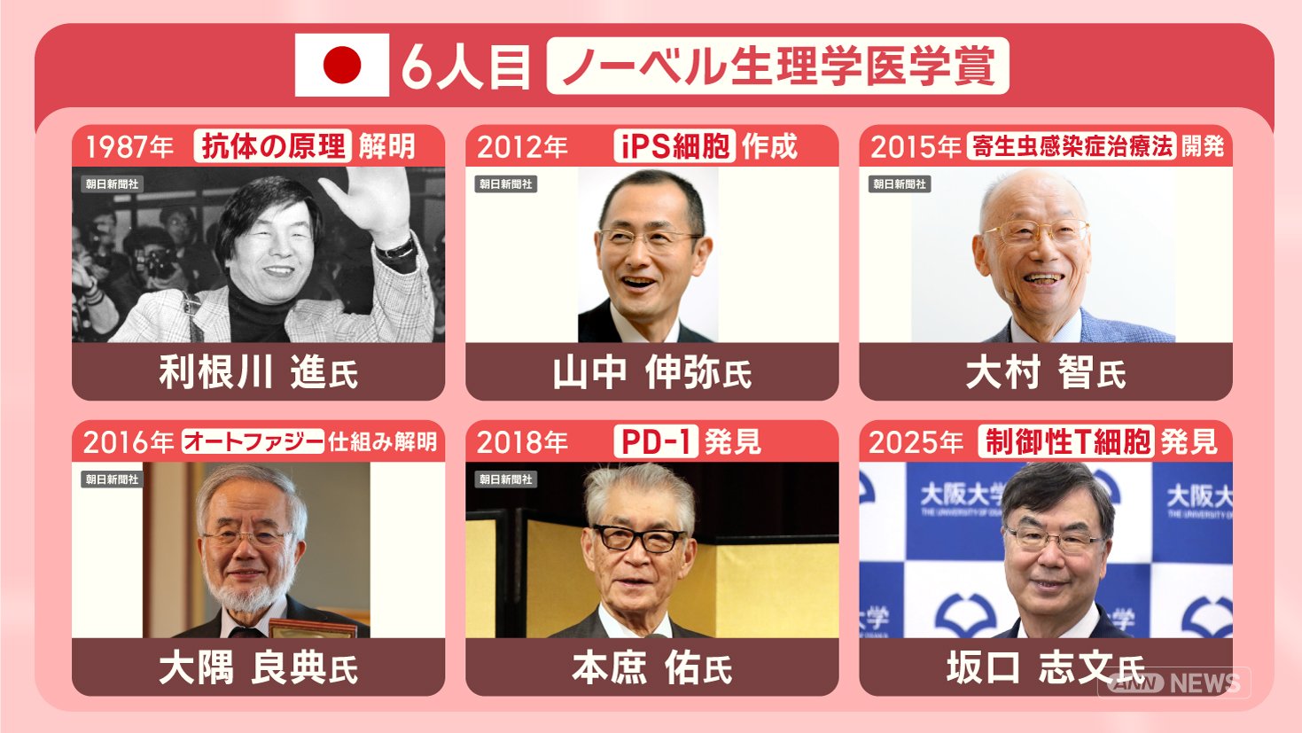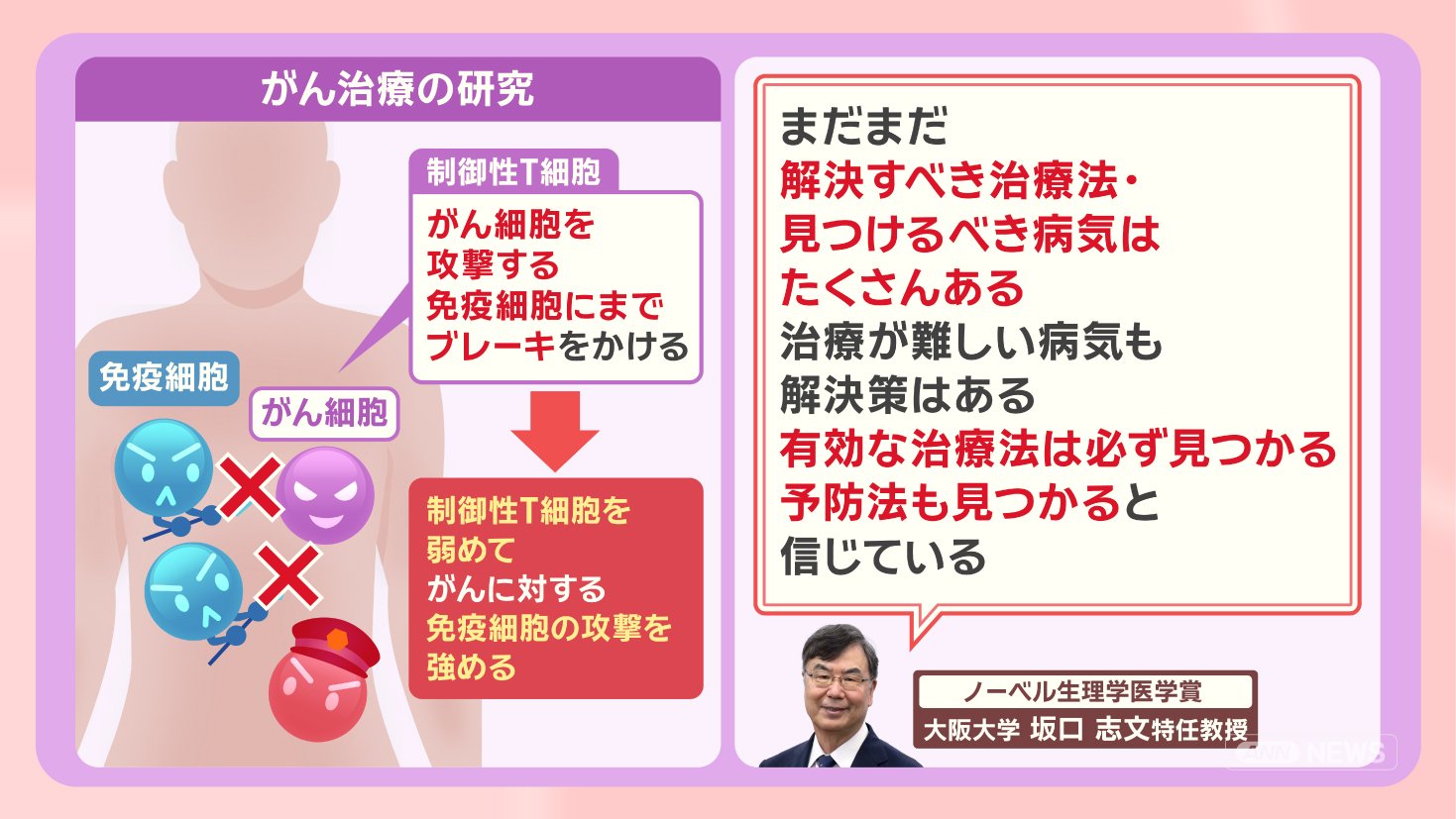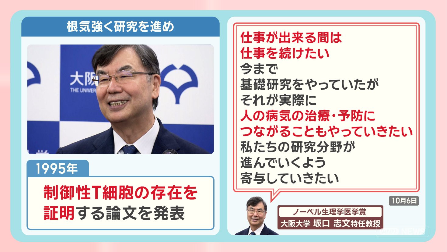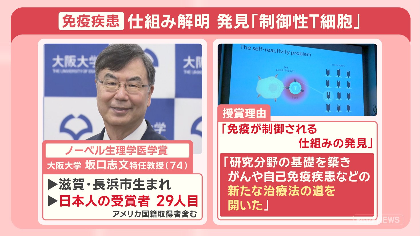 ノーベル生理学・医学賞の受賞者に、大阪大学の坂口志文特任教授が選ばれました。