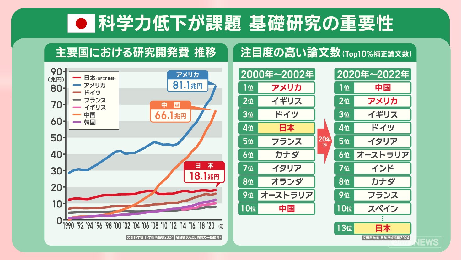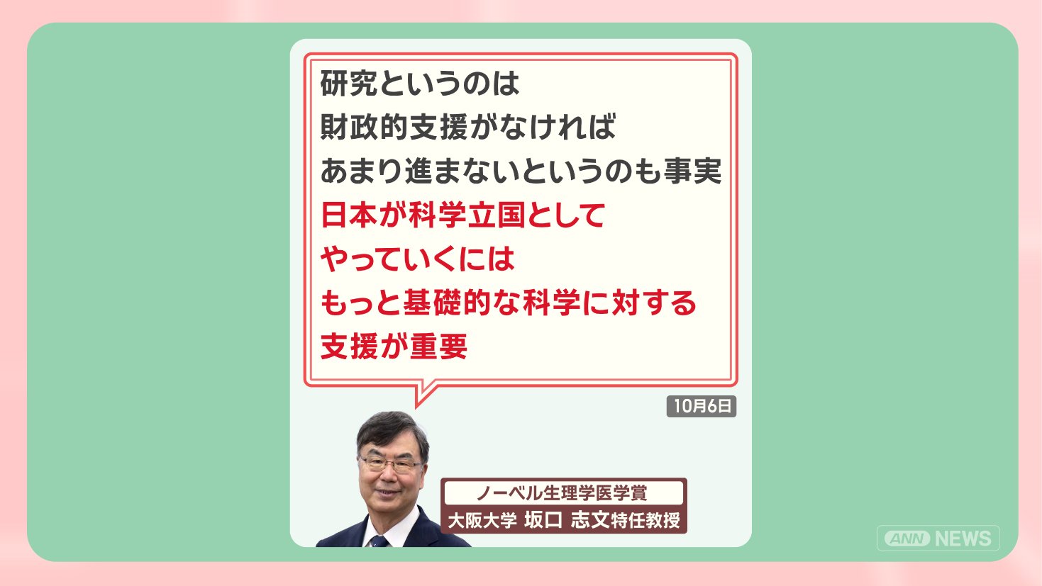 ■坂口さん「基礎的な科学に支援を」停滞する日本の研究費