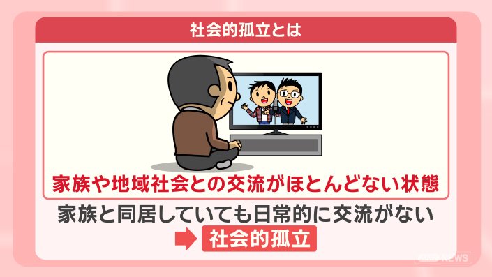 家族と同居していても、日常的に交流がなければ、『社会的孤立』に陥る場合があります。