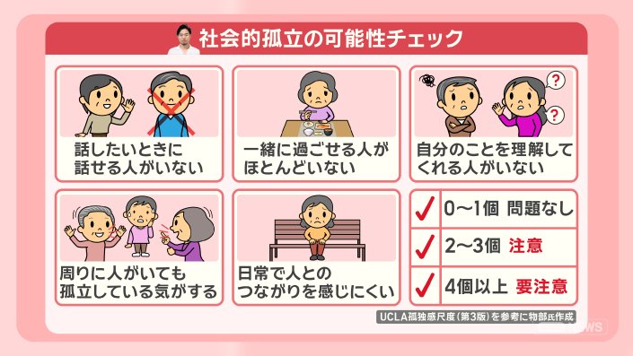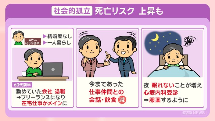■社会的孤立 死亡リスクは飲酒喫煙より危険 きっかけは?