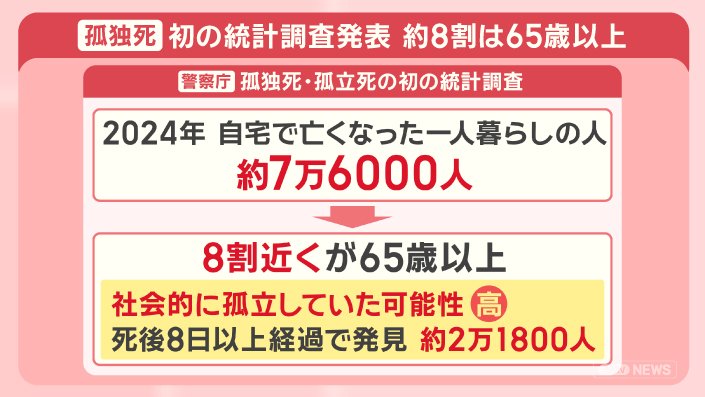 警察庁が、孤独死・孤立死について、初めて統計調査を発表しました。