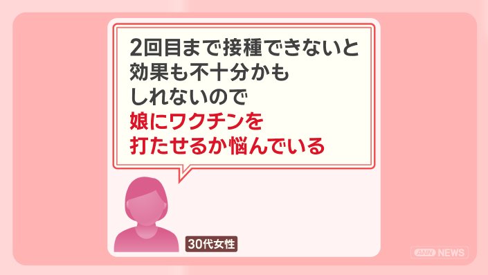 「2回目まで接種できないと、効果も不十分かもしれないので、娘にワクチンを打たせるか悩んでいる」と話しています。