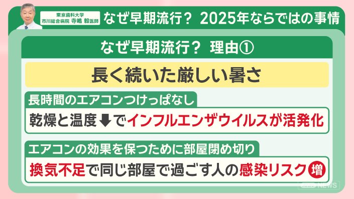 なぜ、インフルエンザの流行が早まったのか、2025年ならではの事情があるといいます。