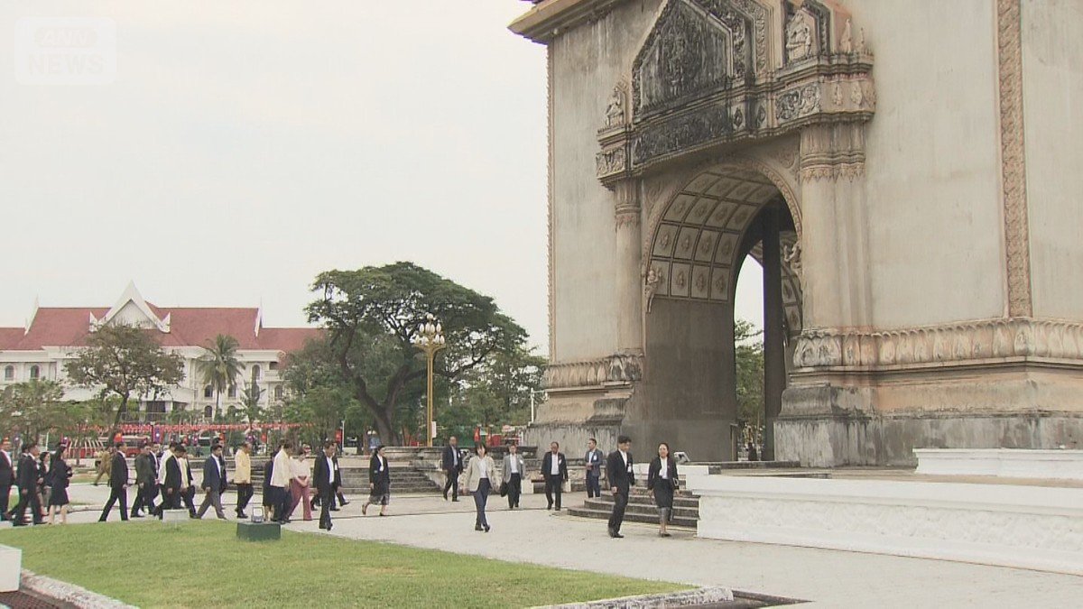 午前10時半すぎ、首都ビエンチャンの中心部にある凱旋門を視察されました。