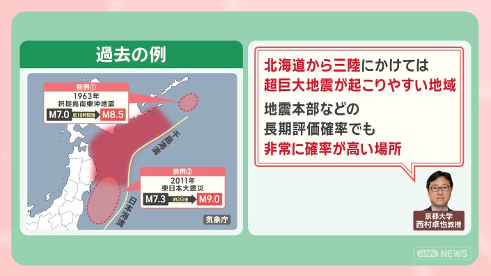 過去、1963年に発生した択捉島南東沖地震、2011年に発生した東日本大震災といった、大規模な地震の前には、マグニチュード7. 0以上の地震が起きています。