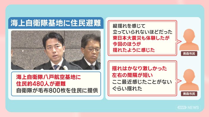 八戸市では、海上自衛隊八戸航空基地に、住民約480人が避難しました。