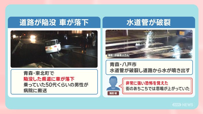 青森・東北町では、県道が陥没し、車が落下。