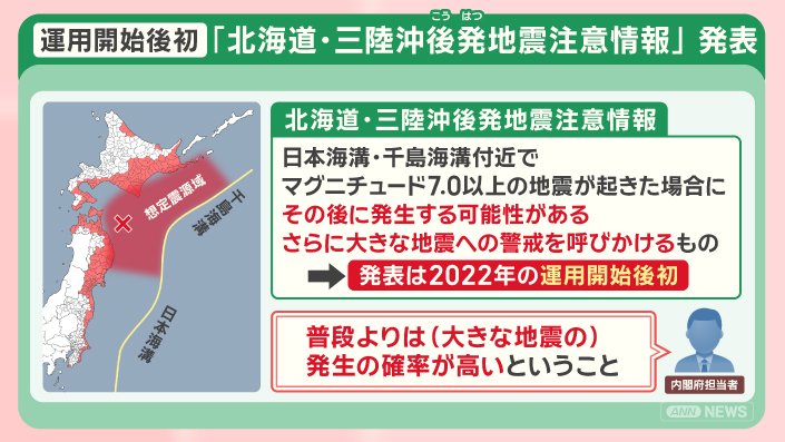 12月8日、青森県沖で発生した震度6強の地震で、気象庁は、『北海道・三陸沖 後発地震注意情報』を初めて発表しました。