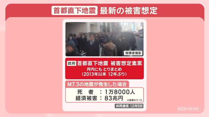 首都直下地震の最新の被害想定に関して、政府は素案を月内にもとりまとめる予定です。